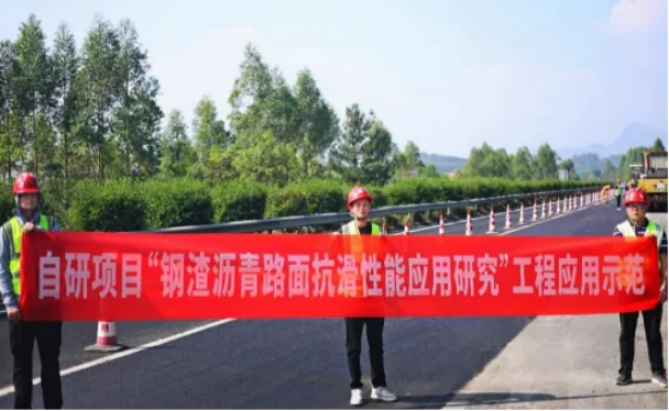 近日,招商交科下屬招商智翔自研項(xiàng)目“鋼渣瀝青路面抗滑性能應(yīng)用研究”取得重大進(jìn)展,在柳州北環(huán)G78:K912+000-K958+387路段成功實(shí)施了一條長(zhǎng)為3.5km的AC-13鋼渣瀝青路面上面層養(yǎng)護(hù)工