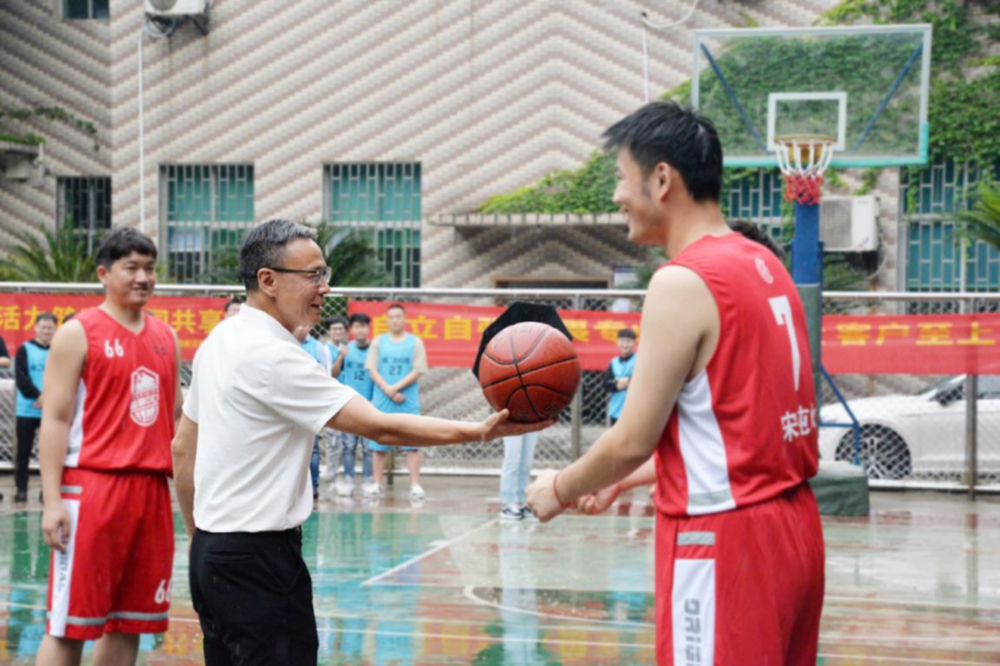 17日下午,招商交科舉行2022年職工籃球聯(lián)賽。董事長劉偉、總經(jīng)理楊國峰、工會主席姜濤、財務(wù)總監(jiān)郭景軍、總經(jīng)理助理吳夢軍、行政總監(jiān)吳永清等公司領(lǐng)導出席開幕式。儀式上,劉偉致開幕詞,楊國峰為比賽開球。