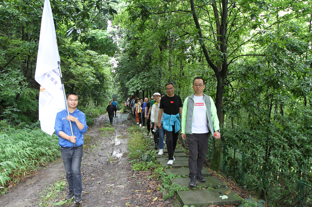 活動當日下著小雨,活動的參加者們風(fēng)雨無阻,精神抖擻、身姿矯健按照既定路線健步而行,以郵電大學(xué)為起點,其間穿越崎嶇山路、景區(qū)道路、田間小路,全程徒步約11公里,順利抵達終點南山南礦山公園。