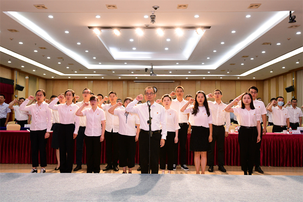 公司黨委書記、董事長(zhǎng)劉偉帶領(lǐng)新黨員宣誓,與會(huì)的全體黨員共同重溫入黨誓詞。