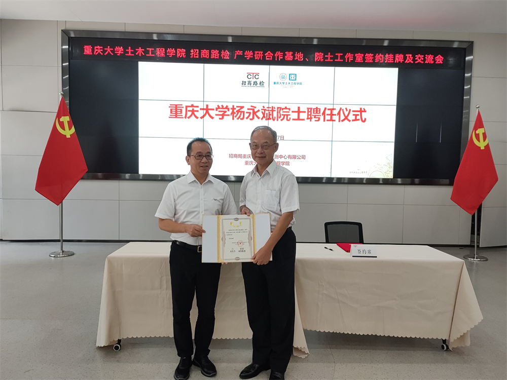 劉偉對“重慶大學土木工程學院與招商路檢產(chǎn)學研合作基地”“招商路檢楊永斌院士工作室”正式成立表示衷心祝賀。他在致辭中表示,招商路檢正處于“創(chuàng)建世界一流專業(yè)領軍示范企業(yè)”的關鍵時期,與重慶大學產(chǎn)教合作,設立院士工作室,既是落實招商交科“人才強院”發(fā)展方略,推進高等教育高質(zhì)量發(fā)展的一次重要探索實踐,也是推進“交通強國”建設的一件大事喜事,可謂正當其時、恰逢其勢。他強調(diào),招商路檢要借此機會,強化人才隊伍建設,強化科技創(chuàng)新驅(qū)動發(fā)展,助推科技成果轉(zhuǎn)化,爭當科技成果的探索者,打造產(chǎn)學研用“命運共同體”,實現(xiàn)共建共贏。招商交科會全力支持招商路檢,實現(xiàn)“創(chuàng)建世界一流”的目標。