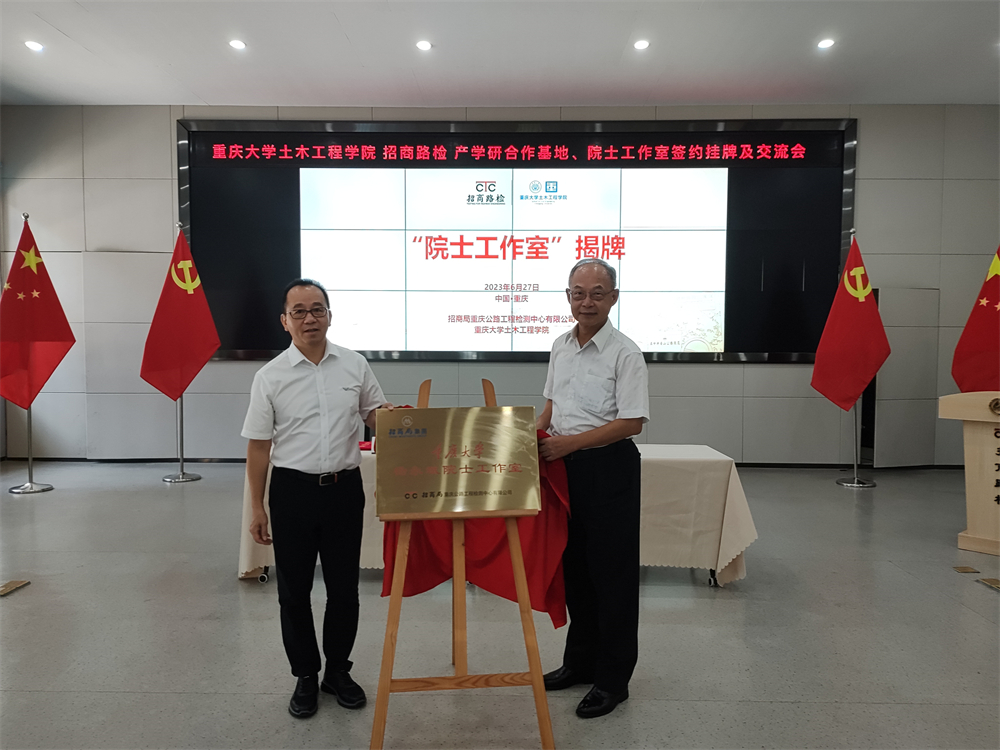 揭牌儀式結束后,招商路檢同楊永斌院士團隊及重慶大學土木工程學院開展座談交流,就交通基礎設施檢測技術裝備開發(fā)及人才培養(yǎng)等合作事項深入探討研究,并陪同調(diào)研招商交科科技展館。