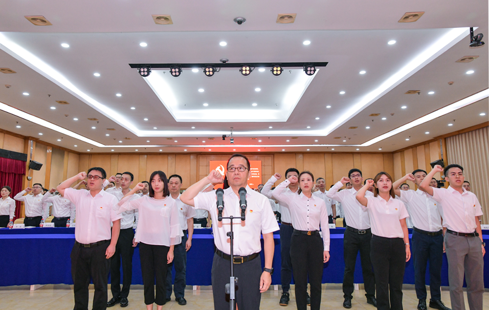 招商交科黨委書記、董事長劉偉帶領(lǐng)新黨員宣誓,與會的全體黨員共同重溫入黨誓詞。