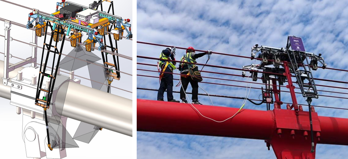 招商交科新一代機器人在寸灘長江大橋?qū)嵤┲骼|檢測