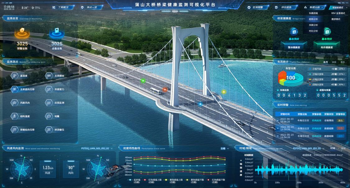 “路安云”普適于橋梁、隧道、邊坡、建筑場館等大型設施結構安全在線監(jiān)測及預警,采用IoT、人工智能、大數據分析等先進技術,集成傳感器、數據采集、數據傳輸、數據預處理、可視化、分級預警、信息發(fā)布、趨勢預測、結構狀態(tài)評估等功能于一體。其中,數據采集與傳輸子系統由現場設備、虛擬監(jiān)控中心、網絡設備及下位機軟件四部分組成,能廣泛接入主流監(jiān)測傳感器設備?!奥钒苍啤痹谄者m性和預警分析等方面處于國內一流水平。