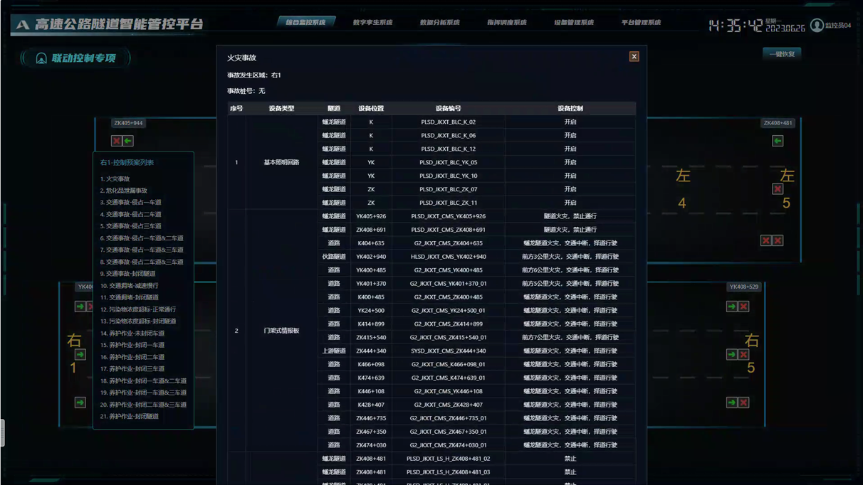 團(tuán)隊(duì)研發(fā)了公路隧道群-路段-互通協(xié)同控制技術(shù),建立了公路隧道機(jī)電設(shè)施動(dòng)態(tài)協(xié)同管控方法,形成相應(yīng)的管控預(yù)案庫(kù),按照“一隧一方案”制定了基于事件類型及隧道分區(qū)的應(yīng)急控制策略,并成功應(yīng)用到陜西秦嶺終南山隧道、江蘇太湖隧道等重點(diǎn)工程,實(shí)現(xiàn)了突發(fā)事件快速響應(yīng)、一鍵聯(lián)動(dòng),提高運(yùn)營(yíng)管理單位的突發(fā)事件處置和協(xié)同管理能力。研究成果已納入交通運(yùn)輸行業(yè)標(biāo)準(zhǔn)《高速公路隧道運(yùn)營(yíng)突發(fā)事件應(yīng)急預(yù)案編制要求》(送審稿)。
