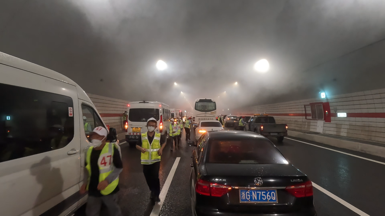 試驗(yàn)中,志愿者乘坐不同車輛到達(dá)“火源點(diǎn)”附近,車輛會(huì)受“火災(zāi)”影響停止,一場(chǎng)與時(shí)間賽跑的緊急逃生演練就此展開(kāi)。經(jīng)過(guò)多次試驗(yàn),公路隧道國(guó)工中心科研團(tuán)隊(duì)利用人員定位等技術(shù),系統(tǒng)獲取了人員逃生的總體時(shí)間、疏散速度、行為特征等試驗(yàn)數(shù)據(jù),為構(gòu)建更加科學(xué)、高效的隧道火災(zāi)疏散預(yù)案提供了寶貴數(shù)據(jù)支持。
