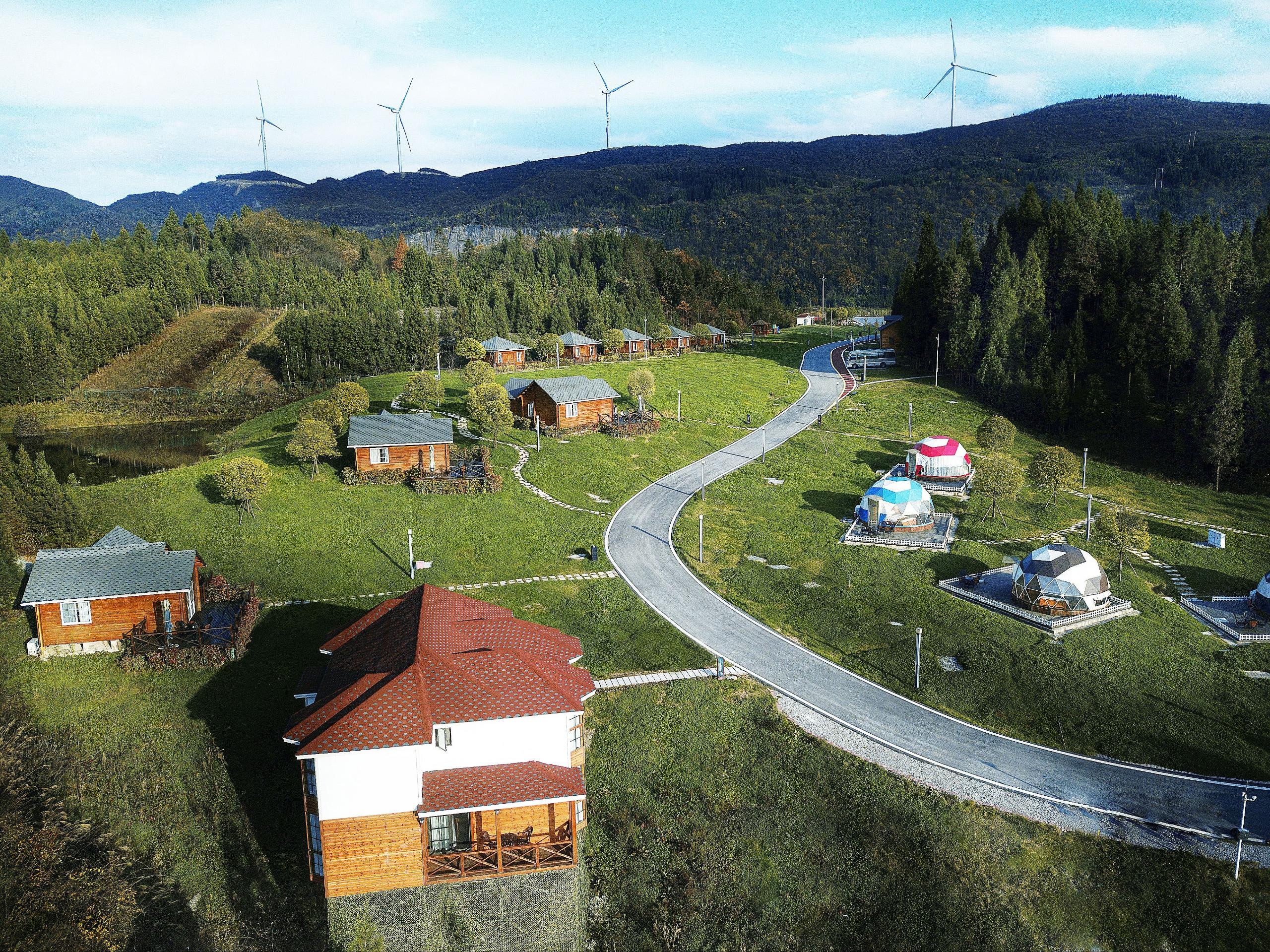 自涪陵區(qū)繼續(xù)向東,到了康養(yǎng)生態(tài)旅游地石柱縣。石柱縣海拔適宜,空氣清新,物產(chǎn)豐饒,境內(nèi)森林草場(chǎng)眾多,旅游資源豐富。許多游客進(jìn)入石柱縣都會(huì)途徑冷水服務(wù)區(qū),一棟棟木制小屋掩映在森林之中,打破了人們對(duì)高速公路服務(wù)區(qū)的傳統(tǒng)印象。依托高速公路建設(shè)階段棄土場(chǎng)打造的冷水服務(wù)區(qū)生態(tài)旅游自駕營(yíng)地,平均海拔約1400米,氣候宜人、交通便捷,是夏季避暑納涼、冬季賞雪滑雪的勝地,很多游客更習(xí)慣稱這里是冷水·風(fēng)谷休閑度假營(yíng)地。營(yíng)地創(chuàng)新“服務(wù)區(qū)+旅游”模式,被中國(guó)公路學(xué)會(huì)評(píng)為“中國(guó)高速第一自駕營(yíng)地”。