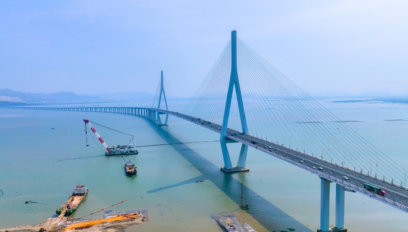 2.橋址地處臺(tái)灣海峽地震帶。開展了全世界首例大跨徑斜拉橋全橋地震模擬試驗(yàn)、樁—土—樁基礎(chǔ)結(jié)構(gòu)相互作用的地震臺(tái)模型試驗(yàn)研究,設(shè)置縱向阻尼器提高了大橋的抗震性能。