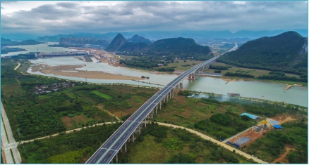 3.英紅特大橋上跨運營中的京廣高鐵,是國內(nèi)首例高速公路同步轉(zhuǎn)體跨越高速鐵路的橋梁。