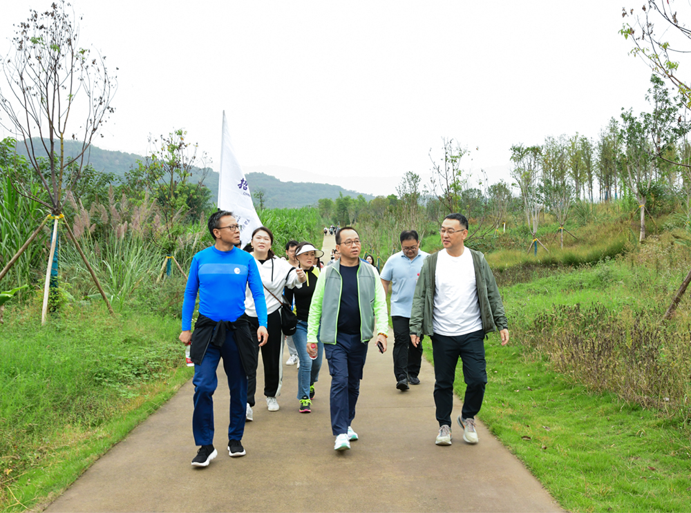 活動(dòng)期間,參加活動(dòng)的員工們前往重慶市廣陽(yáng)島生態(tài)區(qū),揮舞著招商局創(chuàng)立150周年的大旗,精神抖擻、身姿矯健地按照既定路線(xiàn)環(huán)島健步而行,徒步穿越約10公里的景區(qū)道路、田間小路,順利抵達(dá)終點(diǎn)勝利草場(chǎng)。全體參加人員隊(duì)列整齊,并大聲喊出“百年蝶變 逐夢(mèng)向前”、“招商交科,讓您的路不再難”,為招商局創(chuàng)立150周年獻(xiàn)上最誠(chéng)摯的祝福。