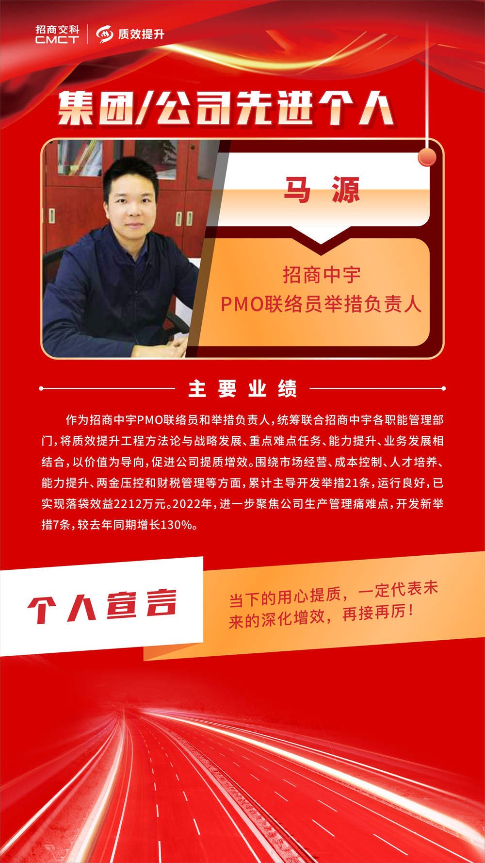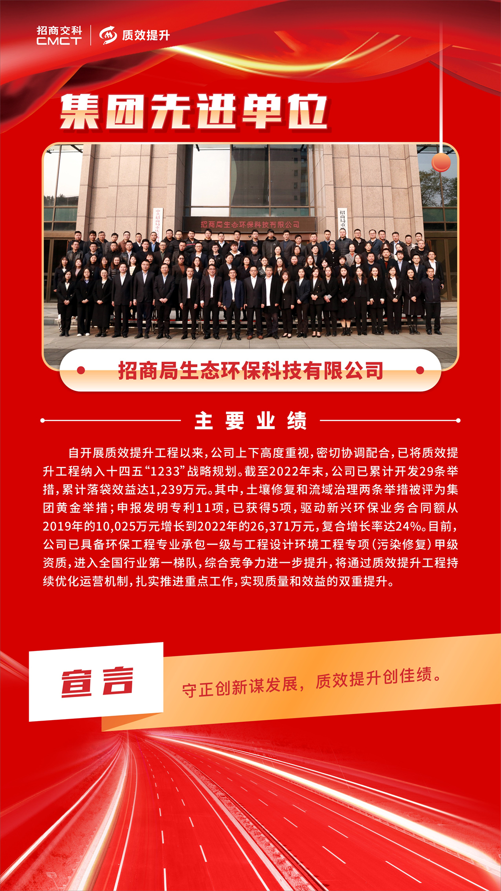 ? 各部門和單位要以先進單位、先進個人為榜樣,堅定不移推動質(zhì)效提升工作走深走實,助力招商交科高質(zhì)量發(fā)展。