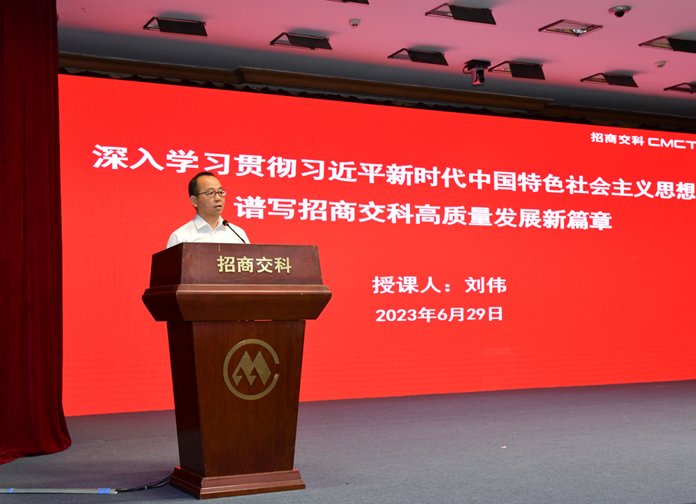 劉偉以《深入學習貫徹習近平新時代中國特色社會主義思想,譜寫招商交科高質(zhì)量發(fā)展新篇章》為題講授主題教育專題黨課。
