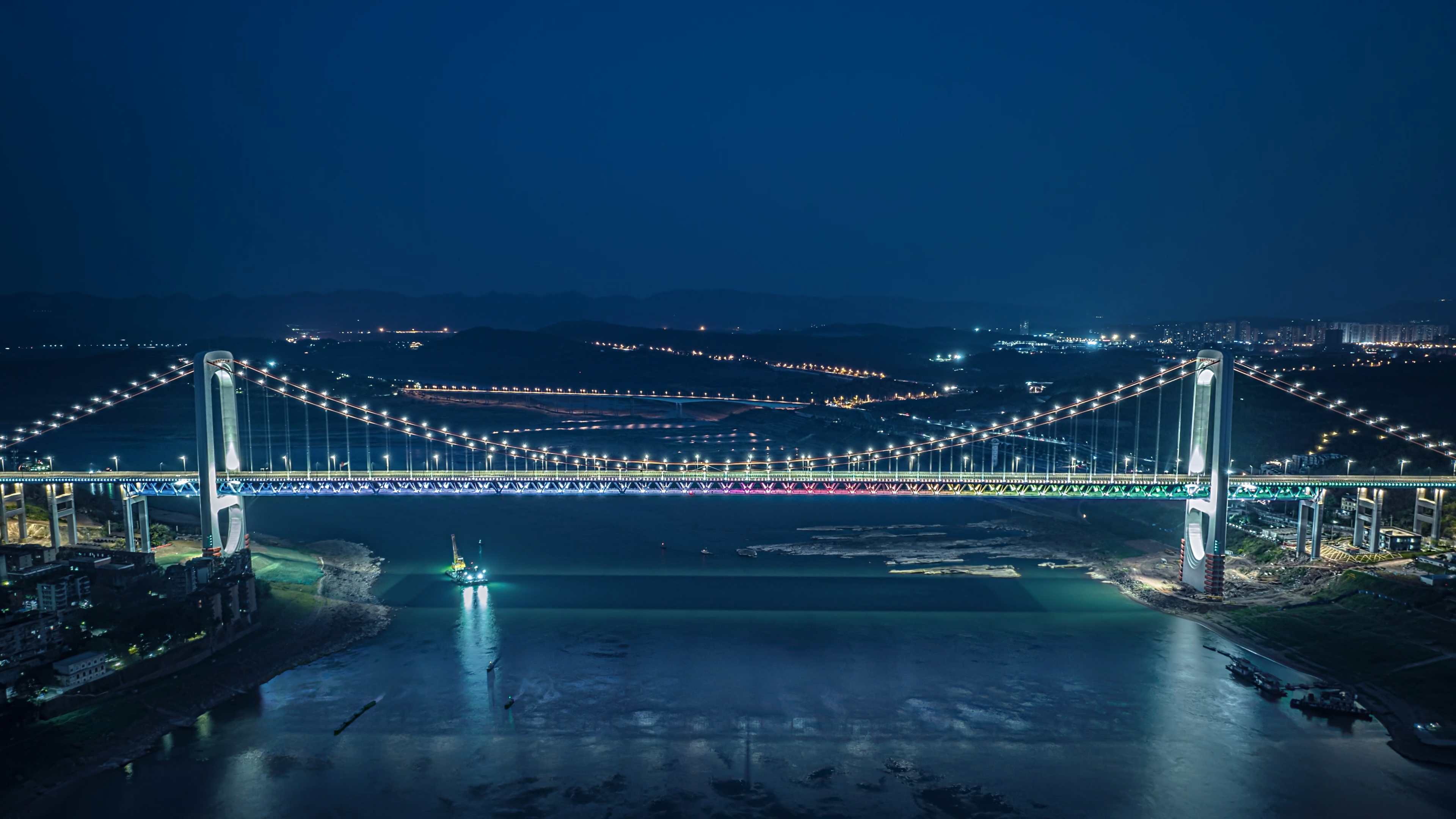 大橋采用“門楹納水”的設(shè)計(jì)理念,橋塔造型將“門”的基本形式和“水”的流暢形態(tài)完美融合,塔身圓潤(rùn)的輪廓、主纜柔美的線型與山城重慶的獨(dú)特韻味相得益彰。橋塔與主纜剛?cè)岵?jì),體現(xiàn)人與自然和諧共生的美學(xué)追求。橋梁色彩搭配以突出懸索橋形態(tài)為主題,皓月白橋塔搭配國(guó)際橙色纜索,賦予橋梁跳躍靈動(dòng)的生命力。夜景打造考慮橋體結(jié)構(gòu)兼顧與城市環(huán)境的關(guān)系,運(yùn)用光影層次、色彩變化營(yíng)造“致用、目觀、暢神”的城市橋梁景觀,為重慶山水之城勾勒出別樣的奇妙色彩。