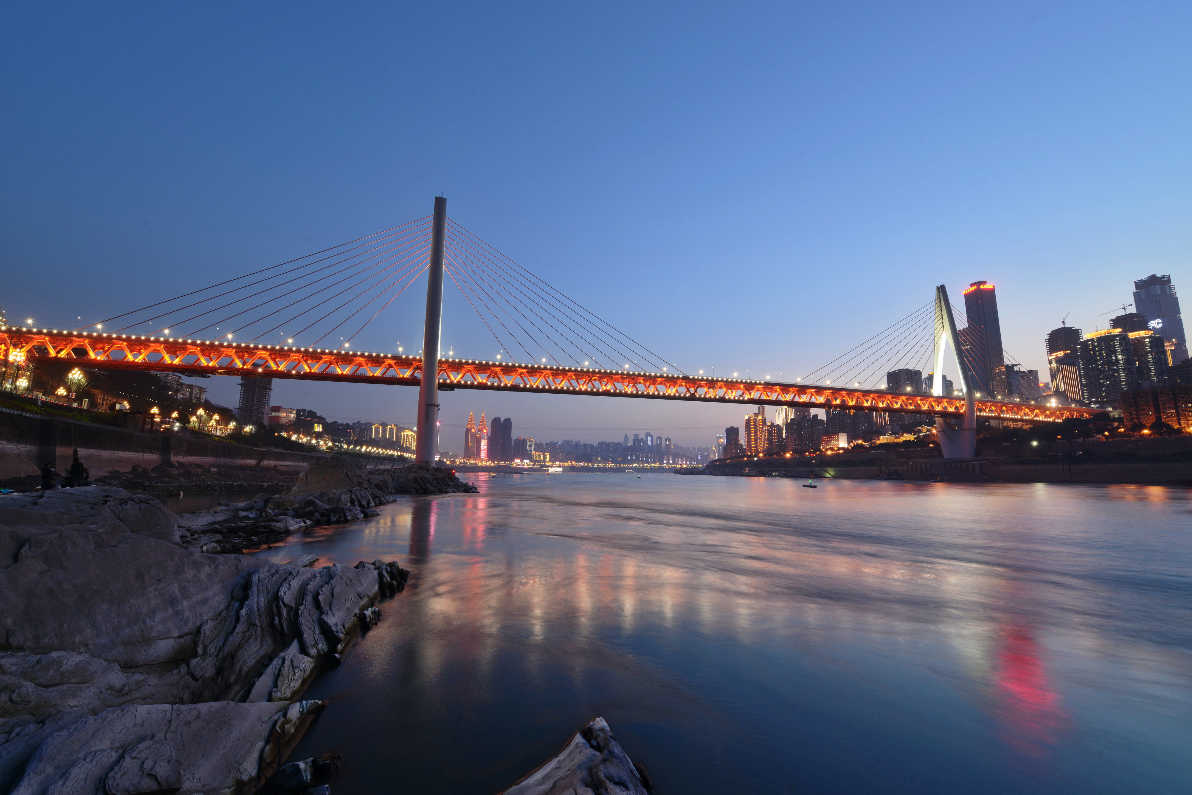 重慶兩江橋(千廝門嘉陵江大橋、東水門長(zhǎng)江大橋)項(xiàng)目包含兩橋一隧,位于重慶中心城區(qū),路線穿越重慶最繁華的兩江四岸以及CBD渝中半島,跨越了最具重慶特色的著名景點(diǎn)以及旅游人群最多的濱江路,成為連接兩江四岸的重要交通大動(dòng)脈。兩江橋設(shè)計(jì)建設(shè)過(guò)程中,特別成立了兩江大橋景觀設(shè)計(jì)專項(xiàng),這也是重慶主城區(qū)橋梁首次成立景觀專項(xiàng),集合了橋梁工程、美學(xué)、環(huán)境藝術(shù)、道路規(guī)劃、智慧交通等專業(yè)技術(shù)門類,開創(chuàng)橋梁景觀打造之先河。全方位的展示了“橋都印象”。