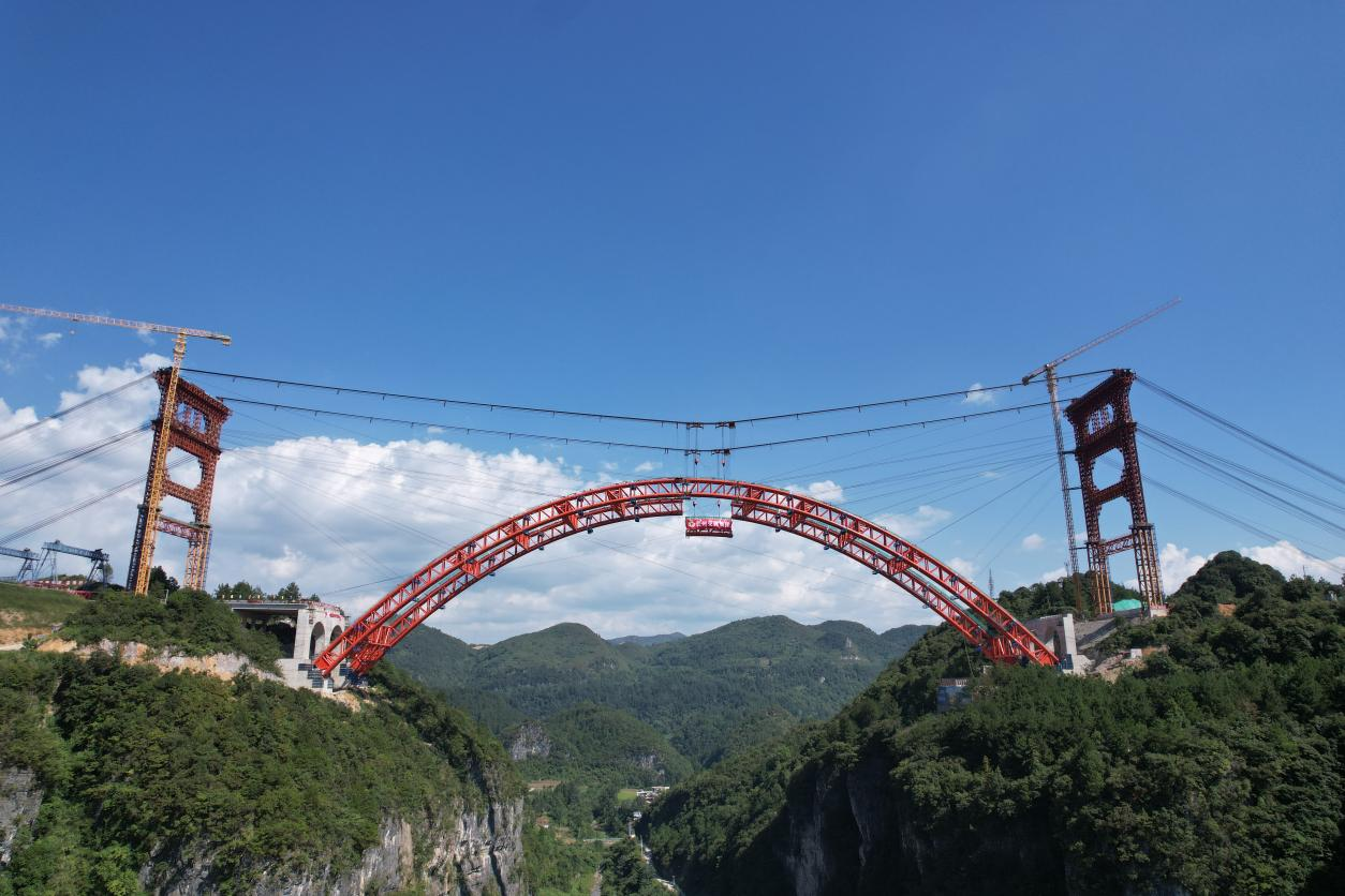 馬場河特大橋位于貴州省黔南布依族苗族自治州貴定縣盤江鎮(zhèn)馬場河村,是貴陽至北海高速公路貴陽至平塘段的重要控制性工程,是一座主跨260米的中承式鋼管混凝土桁架拱橋,橋面設計為雙向六車道,全橋用鋼量8247.3噸,主拱肋共28節(jié)段。為保證安全高效完成吊裝作業(yè),吊裝過程中招商中宇充分利用了智慧監(jiān)管平臺開展視頻監(jiān)控,包括索力、位移、傾角、卷揚機健康狀況監(jiān)測,及應力、環(huán)境檢測等,保障了鋼管拱肋吊裝順利完成。