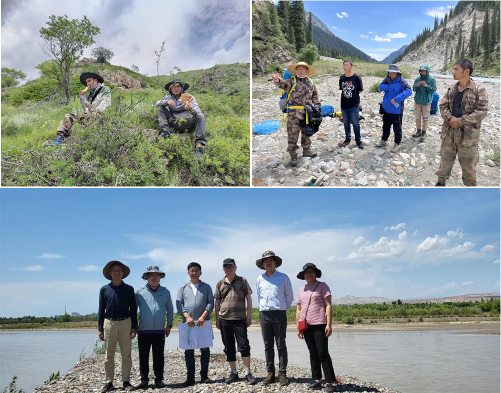 一天早飯后,踏勘隊(duì)伍向目標(biāo)方向前進(jìn)。大概中午時分,東都果爾薩依河河道突然漲水,巖石雜陳,水勢兇險。根據(jù)現(xiàn)場判斷,如果繞路前行,大概需要花費(fèi)一天時間,當(dāng)天的踏勘工作就沒法完成。為順利完成任務(wù),大家決定涉水前行。剛一入腳,一個個又很快“彈”回到岸上,口中不由得叫道:“水怎么這樣涼!”原來,河里的水由天山雪水消融匯集而成,水溫極低,即便夏日午后也冰涼刺骨。有了初次涉水的心里建設(shè),一個個鼓起勇氣再次入水。順利渡河后,顧不上被打濕的鞋子衣服,趕緊投入到現(xiàn)場工作中。