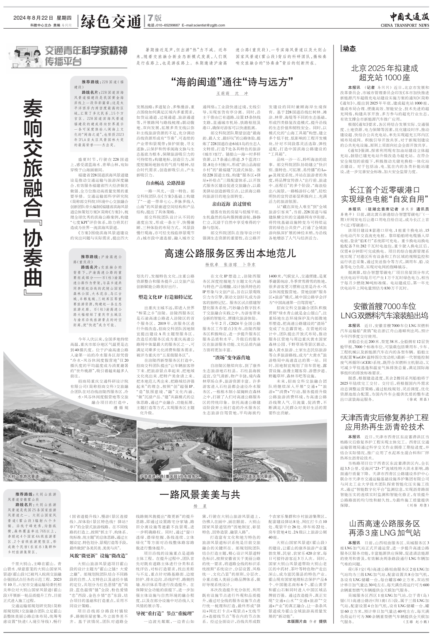 8月22日,《中國(guó)交通報(bào)》在第七版“綠色交通”專欄中刊發(fā)了《高速公路服務(wù)區(qū)秀出本地范兒》文章。文章介紹了招商交科交旅融合創(chuàng)新發(fā)展理念與實(shí)踐,遵循規(guī)劃先行,發(fā)掘特色文化,注重公路資源整合和服務(wù)提升,以交旅產(chǎn)品創(chuàng)新賦能公路美好出行?,F(xiàn)將全文轉(zhuǎn)載如下: