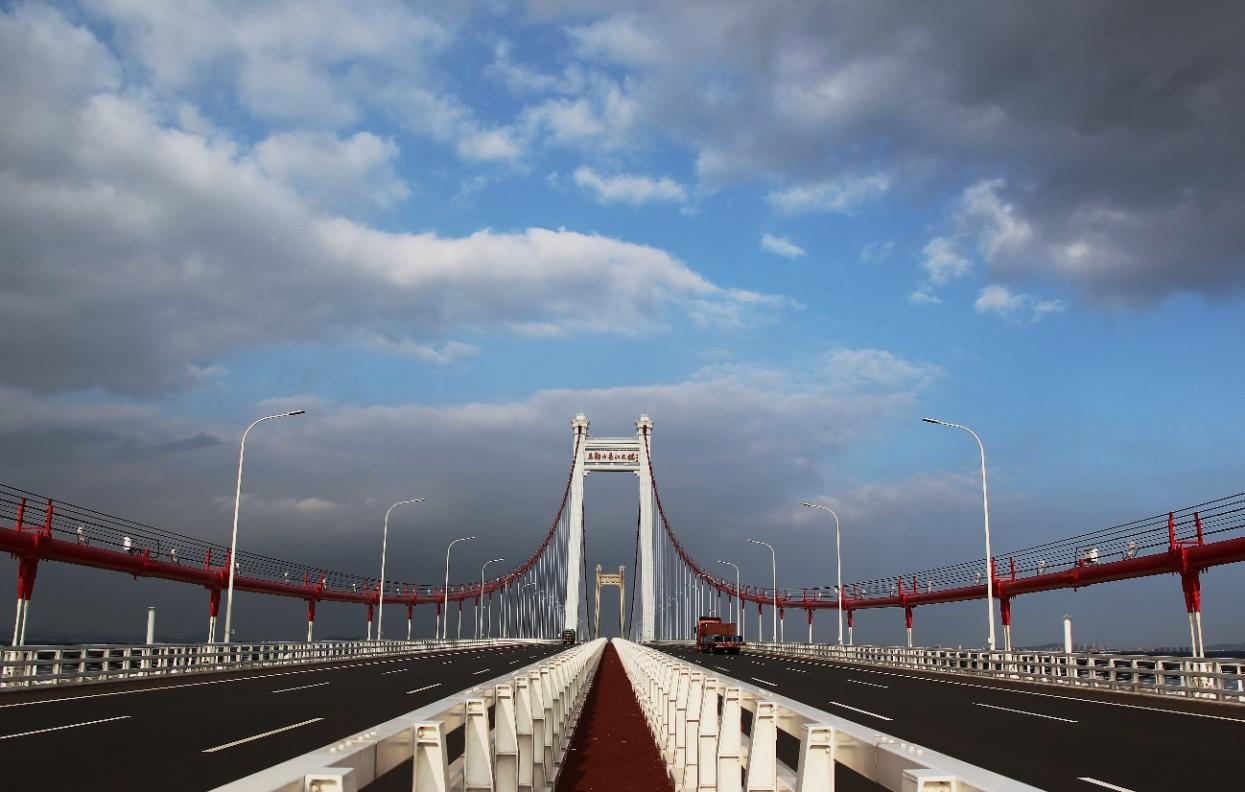 馬鞍山長江公路大橋全長約36.274km,其中跨江主體工程長11.209km。大橋采用雙向6車道、設計車速100km/h高速公路技術標準。左汊主橋采用2×1080m三塔兩跨懸索橋,大橋主跨跨度突破千米,位列世界同類橋型第一,鋪裝面積達到7萬多平方米。大橋橋面鋪裝采用甲基丙烯酸樹脂防水粘結層+33mm澆注式瀝青混凝土+35mm高彈改性SMA10結構。