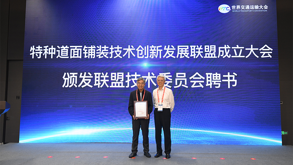 在第一屆年會(huì)上,劉文杰、鄭健龍、王福敏等共同為聯(lián)盟成立揭牌。劉文杰代表中國(guó)公路學(xué)會(huì)發(fā)表賀詞,鄭健龍和王福敏分別致辭。聯(lián)盟各成員單位代表和聯(lián)盟技術(shù)委員會(huì)委員上臺(tái)領(lǐng)取聘書(shū)。會(huì)議由招商交科總經(jīng)理助理張華主持。